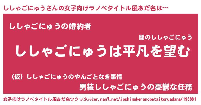 | 男性向けラノベタイトル風あだ名 | 『ダンジョンにししゃごにゅうを求めるのは間違っているだろうか』 |