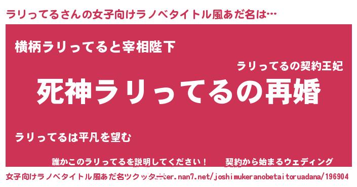 | 自動車の名前っぽいあだ名 | 『ランR』『ランラリギーニ』『デミラ』 |