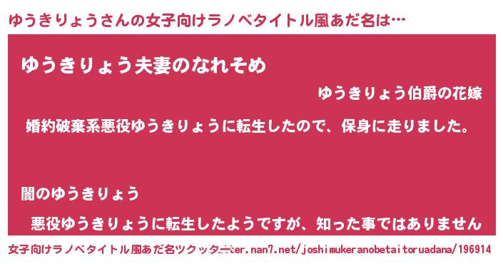 | 男性向けラノベタイトル風あだ名 | 『転生したらゆうきりょうだった件』 |