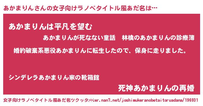 | 男性向けラノベタイトル風あだ名 | 『アカマリンスレイヤー』 |