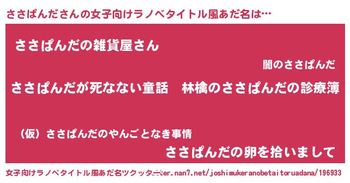 | 意味不明あだ名 | 『住所不定無職ささぱんだ(9歳)』 |