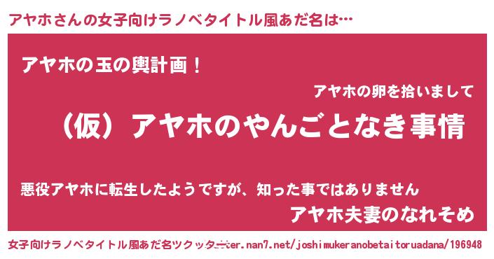 | 胡散臭い通販商品みたいなあだ名 | 『必ず成功する水晶球…その名も「アヤホ」』 |