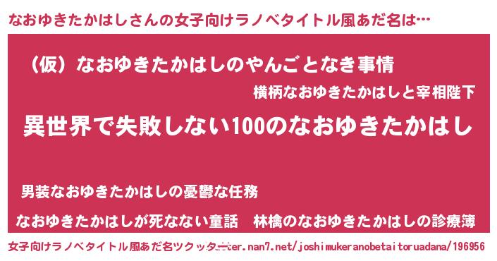 | ヘコむあだ名 | 『なおゆきたかはし(笑)』『なおふぇ~』 |