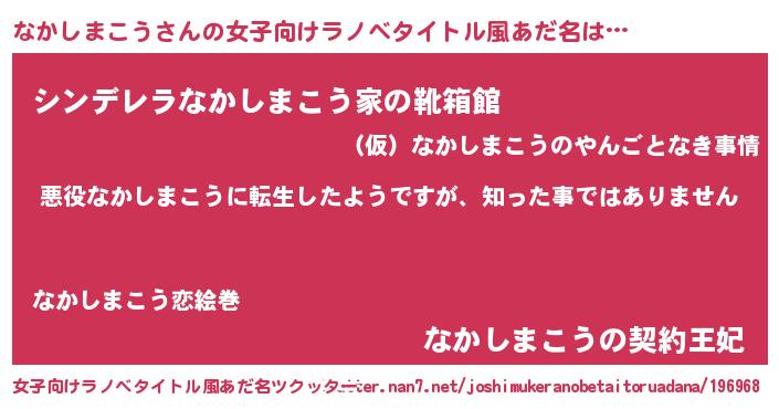 | 意味不明あだ名 | 『住所不定無職なかしまこう(7歳)』 |