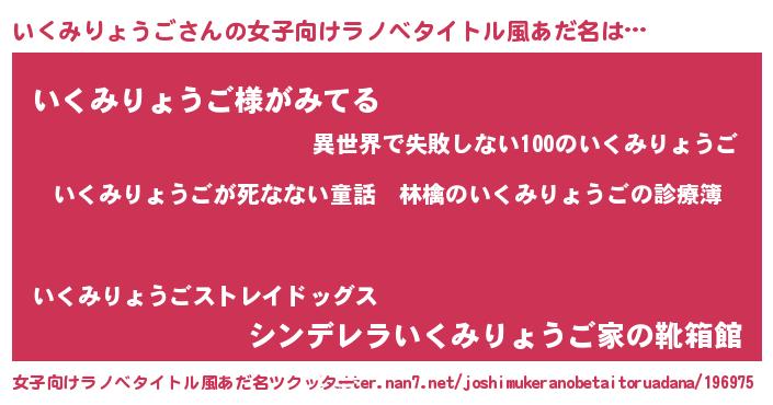 | ヘコむあだ名 | 『いくっ子』『いくみりょうご(笑)』 |