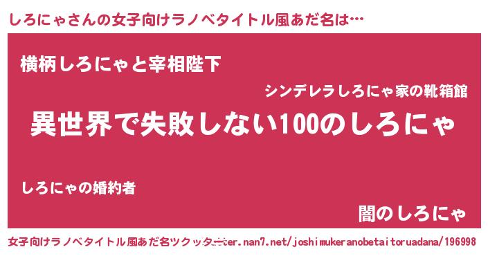 | 男性向けラノベタイトル風あだ名 | 『しろにゃという概念が存在しない退屈な世界 』 |