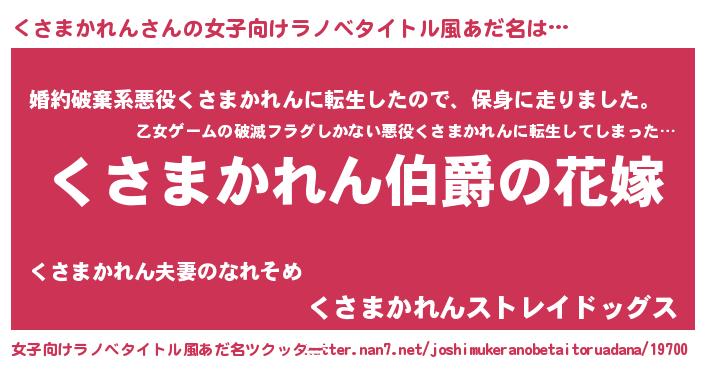 | ヒーロー風カッコイイあだ名 | 『ウルトラくさまかれんマン』 |