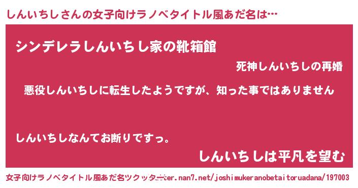 | 意味不明あだ名 | 『住所不定無職しんいちし(6歳)』 |