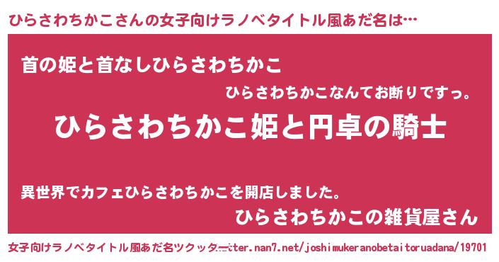 | 男性向けラノベタイトル風あだ名 | 『ひらさわちかこの憂鬱』 |