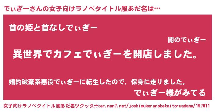 | 男性向けラノベタイトル風あだ名 | 『誰もが恐れるあのでぃぎーが、ぼくの専属メイドになるようです。』 |