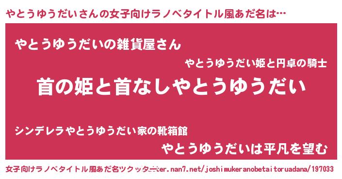 | 男性向けラノベタイトル風あだ名 | 『はたらくやとうゆうだいさま!』 |