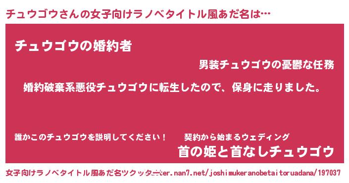 | 男性向けラノベタイトル風あだ名 | 『チュウゴウスレイヤー』 |