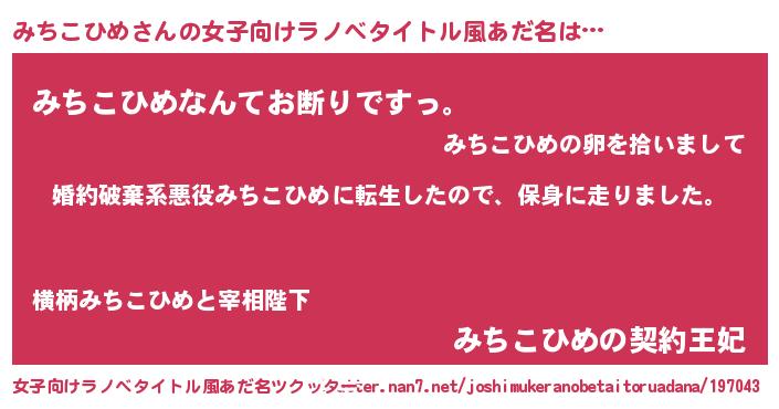 | 男性向けラノベタイトル風あだ名 | 『ミチコヒメスレイヤー』 |