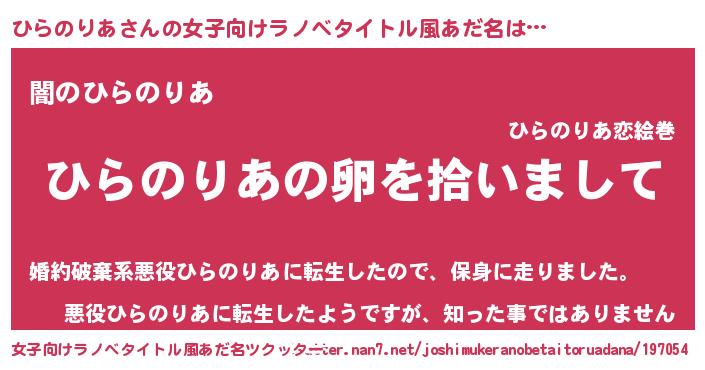| 肩書あだ名 | 『ひらのりあ団長』『ひらのりあ総統』 |