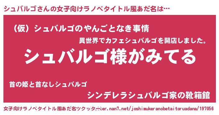 | 男性向けラノベタイトル風あだ名 | 『シュバルゴの嫁は女の子じゃないと思った?』 |