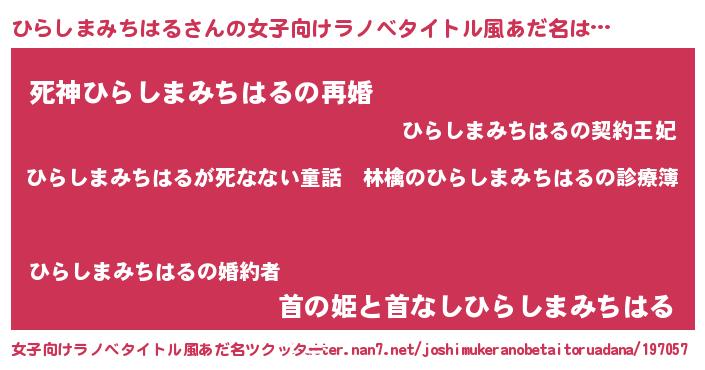 | 男性向けラノベタイトル風あだ名 | 『魔弾の王とひらしまみちはる』 |