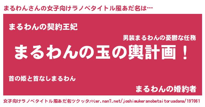 | ヒーロー風カッコイイあだ名 | 『ネオマルワン』『ウルトラまるわんマン』 |