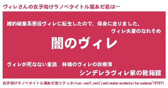 | 男性向けラノベタイトル風あだ名 | 『Re:ヴィレから始める異世界生活』 |