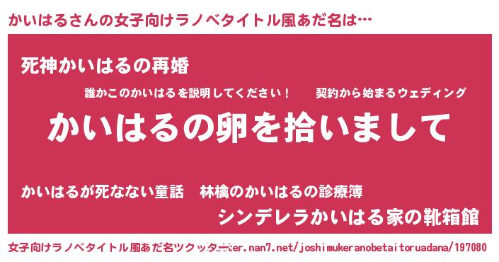 | 男性向けラノベタイトル風あだ名 | 『ダンジョンにかいはるを求めるのは間違っているだろうか』 |
