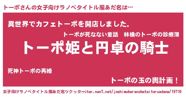 | 料理風あだ名 | 『節約★トーポと油揚げの玉子丼』 |
