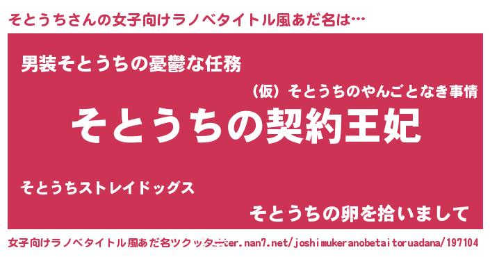 | ピコ太郎風あだ名 | 『ピコソ郎』『ソト十郎』『ソコ八郎』 |