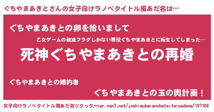 | 男性向けラノベタイトル風あだ名 | 『ノーゲーム・ノーグチヤマアキト』 |