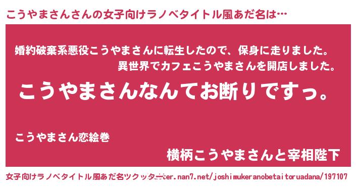 | 男性向けラノベタイトル風あだ名 | 『魔法科高校のこうやまさん』 |