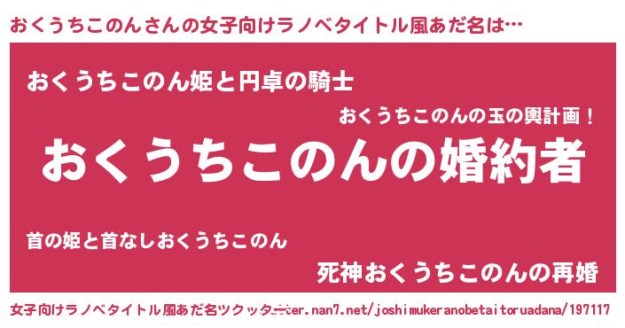 | 意味不明あだ名 | 『おくうちこのんフォーエバー』 |