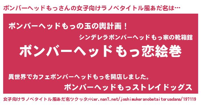 | ヒーロー風カッコイイあだ名 | 『愛の使者ボンバーヘッドもっ』 |