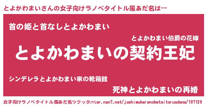 胡散臭い通販商品みたいなあだ名 | 『来世でも幸せになれる水素水…その名も「とよかわまい」』 |