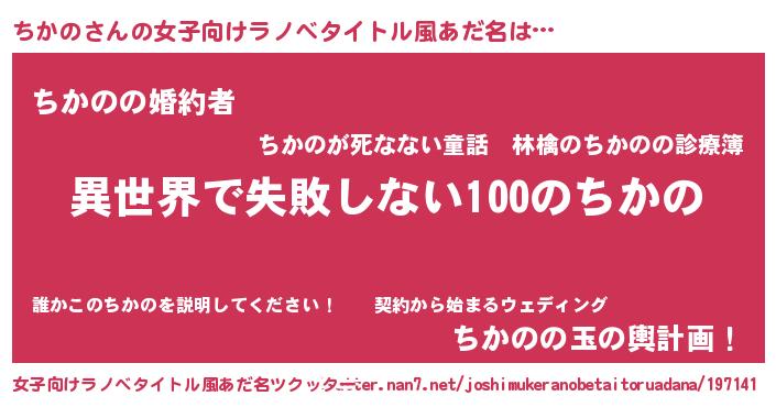 | 男性向けラノベタイトル風あだ名 | 『ちかのという概念が存在しない退屈な世界 』 |