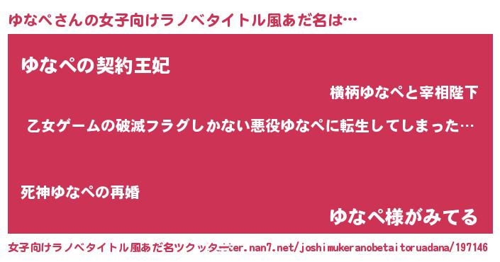 | 意味不明あだ名 | 『住所不定無職ゆなぺ(74歳)』 |