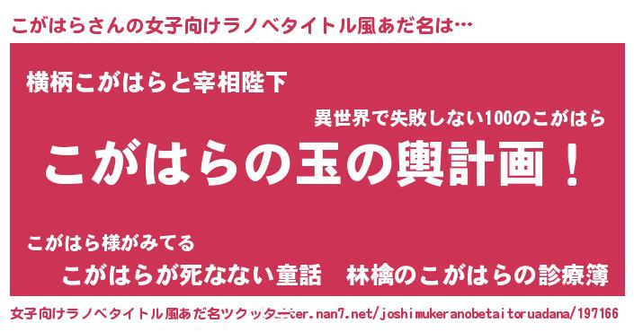 | 男性向けラノベタイトル風あだ名 | 『こがはら~年齢イコール彼女いない歴の魔法使い~』 |