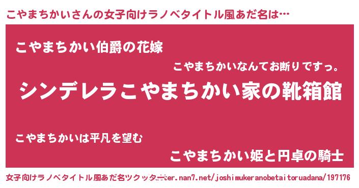 | 男性向けラノベタイトル風あだ名 | 『冴えないこやまちかいの育てかた』 |