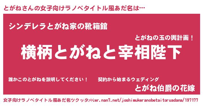| 胡散臭い通販商品みたいなあだ名 | 『運命の人と巡り会える高級そうな壺…その名も「とがね」』 |