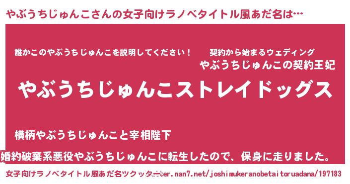 | 意味不明あだ名 | 『自称やぶうちじゅんこ』 |