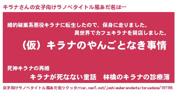 | ヘコむあだ名 | 『キラにゅー』『キラナ(笑)』 |