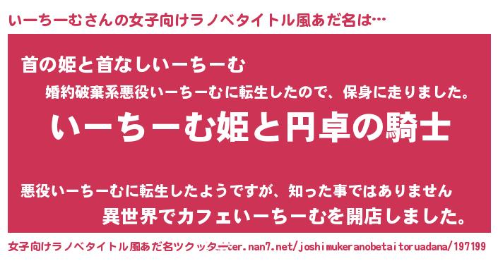 | 男性向けラノベタイトル風あだ名 | 『イーチームアートオンライン』 |