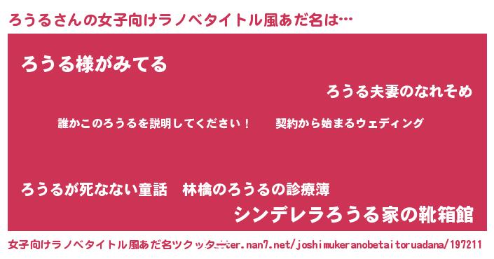 | 男性向けラノベタイトル風あだ名 | 『ロウルアートオンライン』 |