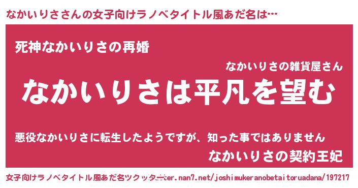 | 胡散臭い通販商品みたいなあだ名 | 『信頼と実績のネックレス…その名も「なかいりさ」』 |