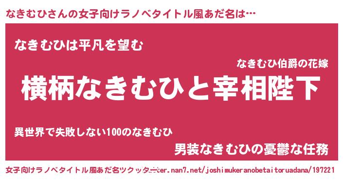 | ポケモン風あだ名 | 『ナキゴンZ』『ヒナキムヒ』 |