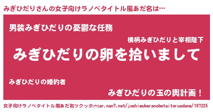 | 男性向けラノベタイトル風あだ名 | 『ダンジョンにみぎひだりを求めるのは間違っているだろうか』 |