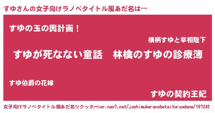 | 男性向けラノベタイトル風あだ名 | 『魔弾の王とすゆ』 |