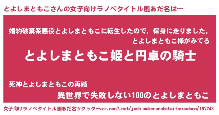 | 男性向けラノベタイトル風あだ名 | 『とよしまともこの憂鬱』 |