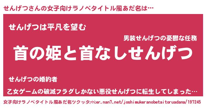 | 男性向けラノベタイトル風あだ名 | 『はたらくせんげつさま!』 |