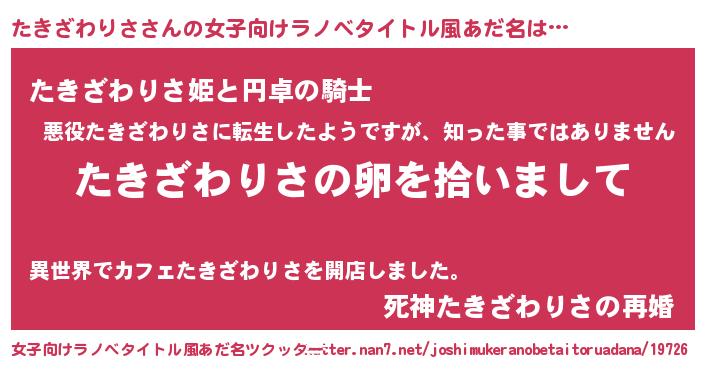 | 男性向けラノベタイトル風あだ名 | 『ダンジョンにたきざわりさを求めるのは間違っているだろうか』 |