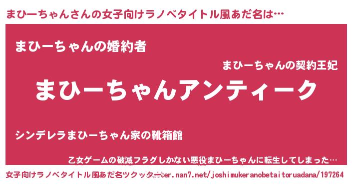 | 男性向けラノベタイトル風あだ名 | 『魔法科高校のまひーちゃん』 |