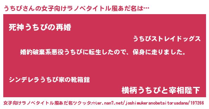 | 意味不明あだ名 | 『エリンギ科うちぴ属』『自称うちぴ』 |