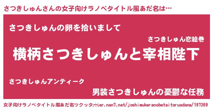 | 男性向けラノベタイトル風あだ名 | 『さつきしゅんに滅ぼされるだけの簡単なお仕事です』 |