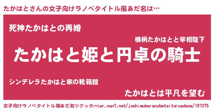 | 胡散臭い通販商品みたいなあだ名 | 『モテモテ間違いなし霊験あらたかなお札…その名も「たかはと」』 |
